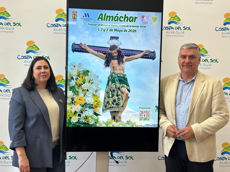 “La Función en Honor al Santo Cristo de la Banda Verde de Almáchar 2026 es de las primeras fiestas que vivimos en la Axarquía, y una de las que más personas congregan”, ha comenzado Muñiz. “Y es que estas fiestas mantienen la tradición de las celebraciones de antaño pero suman otros elementos actuales como actuaciones de grupos de moda o la música de dj”, ha continuado la vicepresidenta quien también ha hecho mención “a la parte emotiva ligada a la religiosidad dada la gran devoción que tienen los almachareños al Cristo de la Banda Verde. También muchos axárquicos, como se ve en la procesión del domingo”.