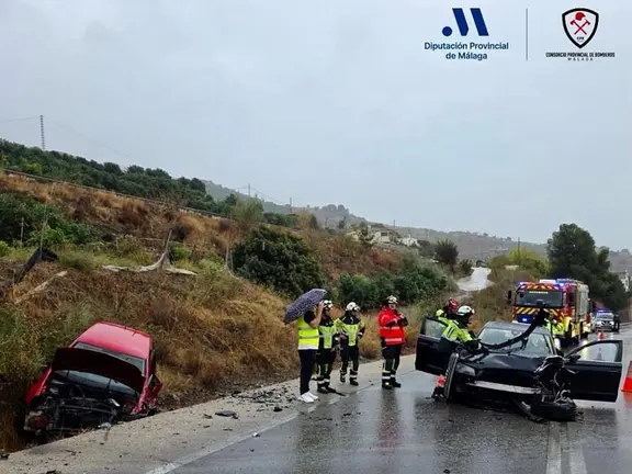 Dos coches chocan frontalmente en la carretera A-356 en el municipio de La Viñuela