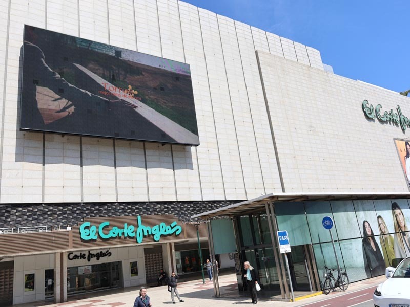 Las pantallas exteriores de El Corte Inglés en la avenida de Andalucía mostrarán más de 1.500 impactos publicitarios de un vídeo promocional turístico del municipio