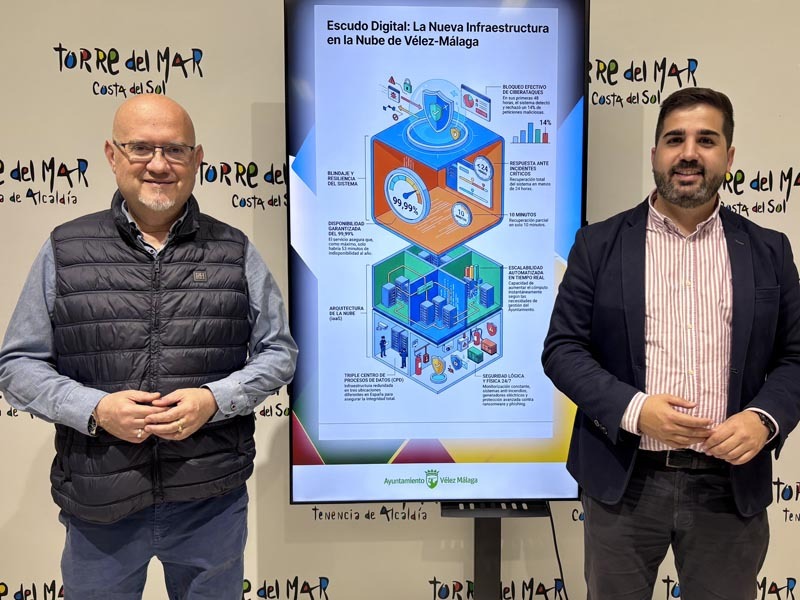 Por su parte, David Segura explicó que esta actuación supone “la mayor inversión histórica en el Ayuntamiento de Vélez-Málaga en materia de ciberseguridad”, con una inversión superior a 400.000 euros destinada a la protección de datos y de los servicios informáticos municipales.