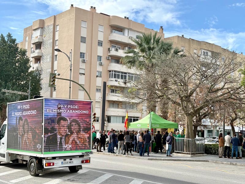 Con un camión con pantallas led, que recorrerá este martes las calles de Vélez-Málaga, Torre del Mar y Caleta de Vélez, Vox pretende denunciar la decadencia en los servicios públicos, los problemas que sufren los malagueños para acceder a una vivienda y la falta de infraestructuras.