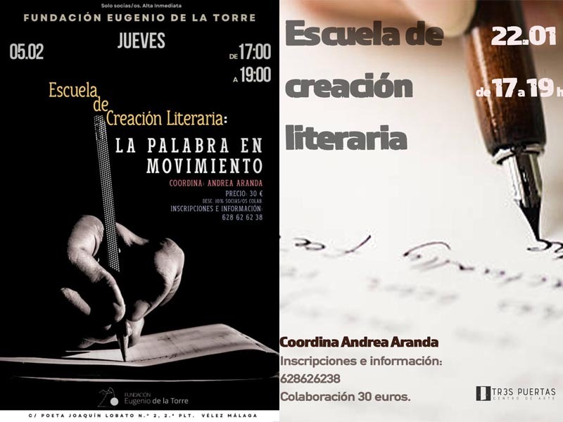 Los cursos de la Escuela de Escritura comenzarán el próximo jueves 22 de enero en Tr3s Puertas, en Torre del Mar. Y la segunda clase será el jueves 5 de febrero, en la Fundación Eugenio de la Torre, en Vélez-Málaga.