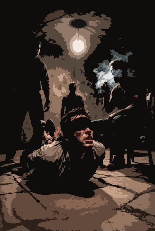 Lo sujetaron por las axilas y lo arrastraron hasta otra sala de la estancia. Allí lo sentaron en una silla cuyos crujidos ahogados solapaban sus propios quejidos, y lo sujetaron por los hombros. Siguió un largo silencio, sólo interrumpido por el sonido de las caladas que alguien, quizás su torturador, daba a un cigarrillo.