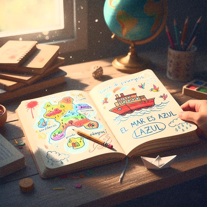 apuntes donde, a colores, una isla es su silueta.