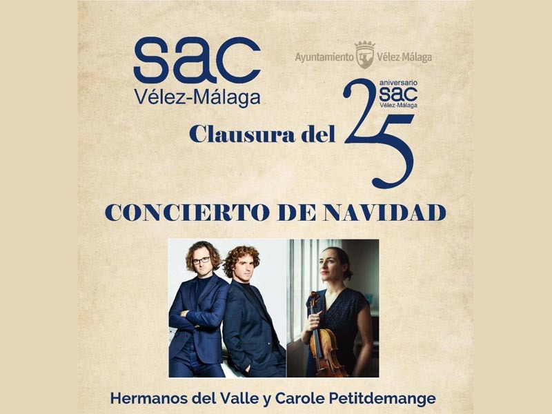 A comienzos del siglo XXI nació en Vélez-Málaga la Sociedad de Amigos de la Cultura (SAC), una asociación que, durante 25 años, ha trabajado en la conservación y defensa del patrimonio histórico y cultural de la capital de la Axarquía. A pocas semanas de cerrar el año, la entidad, junto a la Concejalía de Cultura del Ayuntamiento, ha organizado un concierto de Navidad para clausurar su 25 aniversario. Los Hermanos del Valle, acompañados de la violinista Carole Petidemange, serán los encargados de amenizar la velada, que se celebrará el próximo 19 de diciembre a las 20:30 horas en el Centro del Exilio.