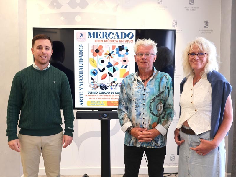 Por su parte, el artesano Dave Pepper, junto a su pareja, Stella Ann Ratcliffe, ha indicado durante la presentación del cartel, que ha tenido lugar en el salón de plenos, que “el mercado es una fantástica oportunidad”, al tiempo que ha agradecido la colaboración prestada por el Ayuntamiento de Torrox para llevarlo a cabo. Pepper ha destacado el aliciente de la música en vivo, “que seguro atraerá a numerosos visitantes de municipios vecinos”. Para finalizar, ha añadido que el mercado también “dinamiza la economía local y el consumo en los bares y restaurantes del entorno de la plaza de la Constitución”.