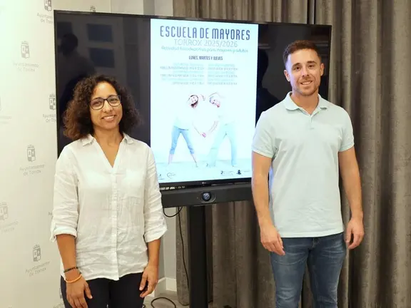 El concejal de Deportes de Torrox, José Manuel Fernández, ha presentado en el salón de plenos del Ayuntamiento de la localidad el cartel y el calendario de la nueva temporada de la Escuela de Mayores. Junto a la monitora deportiva Marina Zeni, el edil ha explicado que la escuela funcionará en seis clases los lunes, martes y jueves en horarios de mañana y tarde tanto en Torrox como en El Morche. Fernández ha afirmado que esta escuela del área de Deportes “está muy consolidada, y tiene como objetivo seguir impulsando un estilo de vida saludable entre nuestros mayores”.