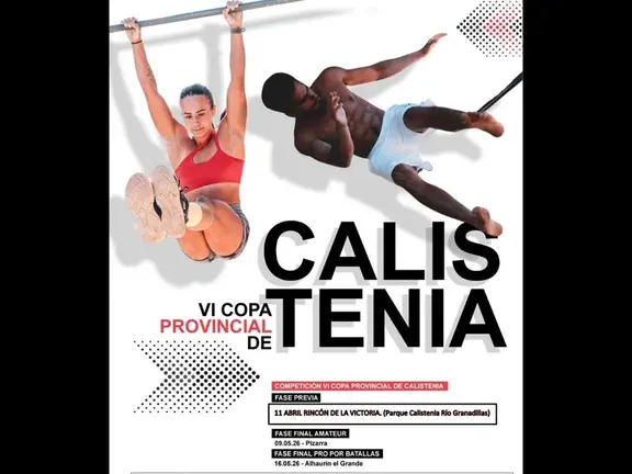 Rincón de la Victoria será sede de la fase previa de la VI Copa de Calistenia de la Diputación provincial de Málaga. El evento tendrá lugar el 11 de abril en la pista deportiva de calistenia de la playa del municipio, junto al arroyo Granadillas.