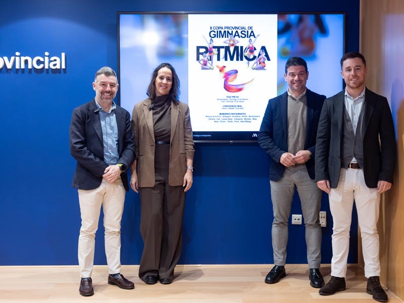 Más de 250 deportistas volverán a darse cita en la Copa Provincial de Gimnasia Rítmica de la Diputación de Málaga, que celebra su segunda edición en Benalmádena, Coín y Torrox, sede de la final. La competición tendrá lugar entre los meses de febrero y abril con jóvenes deportistas de 16 municipios: las tres localidades sede y Alhaurín de la Torre, Antequera, Archidona, Arriate, Cártama, Cuevas Bajas, Fuengirola, Marbella, Mijas, Nerja, Pizarra, Ronda y Vélez-Málaga. Así lo dio a conocer el vicepresidente y diputado de Deportes, Juan Rosas, junto al también vicepresidente de la Diputación y concejal de Coín, Cristóbal Ortega; el concejal de Deportes del Ayuntamiento de Torrox, José Manuel Fernández; y la delegada en Málaga de la Federación Andaluza de Gimnasia, Paula Martínez, durante la presentación de esta copa. Según Rosas, este evento deportivo “nació en 2025 para dar respuesta a la demanda de competiciones de promoción en una provincia con un gran número de gimnastas y con numerosos clubes y escuelas”.