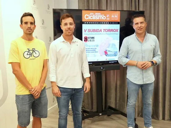 Presentada la V Subida a Torrox, puntuable para el Ranking Andaluz de Carretera e incluida en la edición número 27 del Circuito Provincial de Ciclismo de la Diputación de Málaga. Se celebrará el próximo domingo 26 de octubre con salida a las 10:00 horas desde el exterior del pabellón cubierto del complejo deportivo de La Granja. El acto ha tenido lugar en el salón de plenos del Ayuntamiento torroxeño con la presencia del alcalde, Óscar Medina; el concejal de Deportes, José Manuel Fernández; y el vicepresidente y tesorero del Club Ciclista Torrox, Pablo Martínez. Medina ha asegurado que esta prueba “vuelve a situar a Torrox en la élite del ciclismo andaluz”. El alcalde ha recordado que el municipio ha sido última salida de la Vuelta Ciclista a Andalucía masculina, además de salida y llegada de la femenina disputada recientemente, a lo que ahora se une esta V Subida a Torrox “que volverá a atraer a ciclistas y aficionados de todas las provincias andaluzas”. Óscar Medina ha reconocido públicamente el trabajo de la delegación de Deportes y del Club Ciclista Torrox, organizadores de la subida.