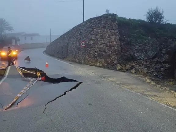 La carretera A-381 se encuentra anegada y ha sufrido un derrumbe entre los kilómetros 25 y 31, sentido Jerez en Medina Sidonia, que se encuentra cortado, aunque se puede pasar por el punto de desvío habilitado en el hito kilométrico 28.