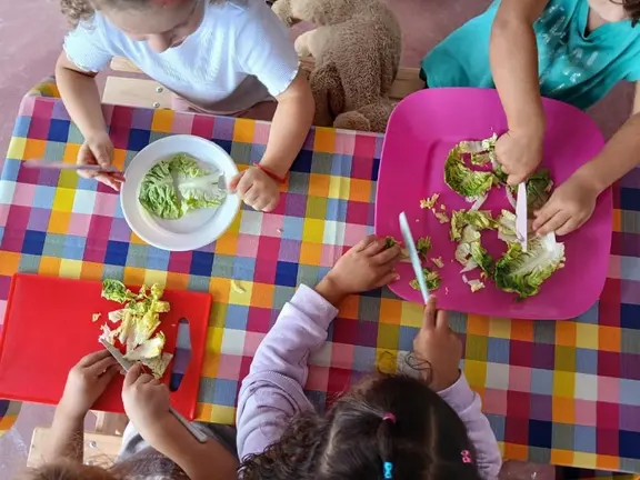 En este caso, la actividad ha consistido en un taller para la elaboración de ensaladas, en el que ayudados por la dinamización de la enfermera referente Marta Zamora, los pequeños han manipulado, identificado y reconocido verduras y hortalizas de temporada y, sobre todo, del terreno. Estos ingredientes, fundamentales para una alimentación saludable y equilibrada como la lechuga, los tomates, los pepinos, etc., se han materializado en un plato básico y saludable.