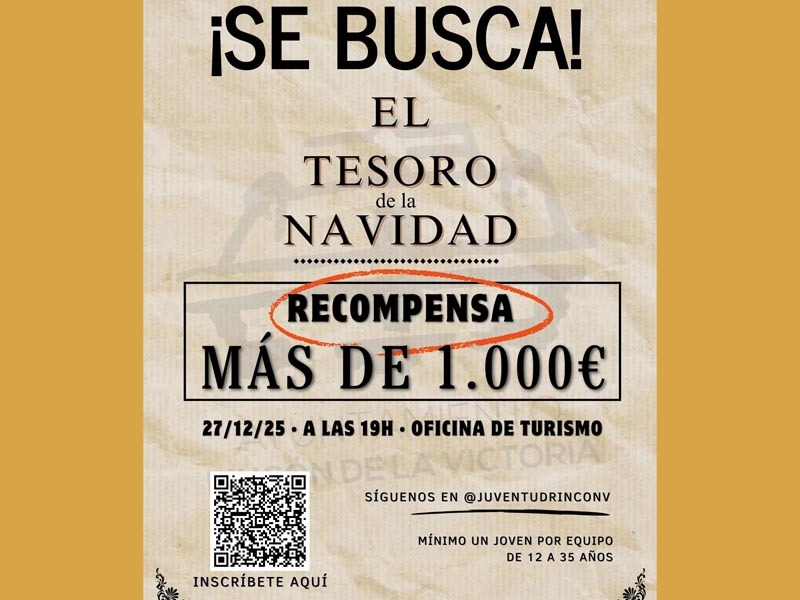 La Concejalía de Juventud del Ayuntamiento de Rincón de la Victoria pone en marcha una nueva edición de `El Tesoro de la Navidad´, que se celebrará el sábado 27 de diciembre, en horario de 19:00 a 22:00 horas.