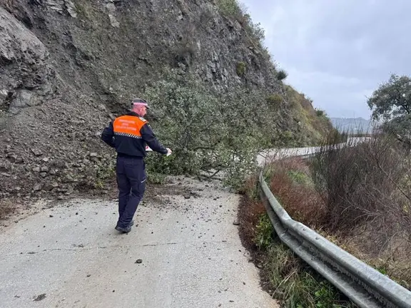 Las fuertes lluvias y rachas de viento asociadas a la borrasca Leonardo han provocado importantes incidencias en la comarca de la Axarquía, donde más de una decena de carreteras se han visto afectadas por desprendimientos de tierras y piedras, obligando a la intervención del Consorcio Provincial de Bomberos de la Diputación de Málaga.