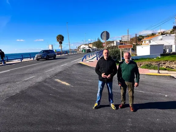 El teniente de alcalde Lagos, David Vilches, y el concejal delegado de Infraestructuras y Agricultura del Ayuntamiento de Vélez-Málaga, Jesús María Claros, han presentado una nueva actuación, ya finalizada, de renovación y acondicionamiento de la calzada de la CN-340 y el acceso desde el vial al Camino de Lagos. Las obras realizadas de refuerzo de la calzada, con labores de hormigonado y asfaltado en varios tramos del firme, se han ejecutado en un plazo aproximado de 10 días, a través de una inversión de 111.200 euros.