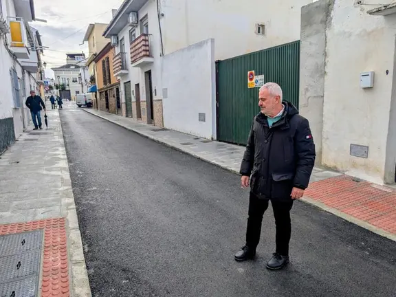El concejal de Infraestructuras del Ayuntamiento de Vélez-Málaga, Jesús María Claros, ha visitado la terminación de las actuaciones realizadas en la calle Tenerías.