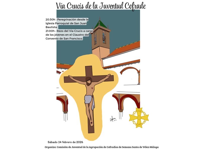 La Comisión de Infancia y Juventud de la Agrupación de Cofradías de Semana Santa de Vélez-Málaga va a llevar a cabo el vía crucis de la juventud cofrade el próximo sábado 14 de febrero. Se trata de un encuentro "de fe, oración y convivencia que reunirá a los jóvenes de las cofradías en un mismo camino de reflexión y testimonio cristiano".