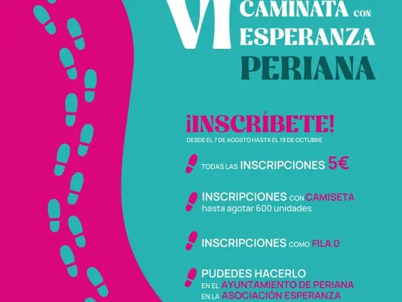El plazo de inscripciones está abierto teniendo un coste de 5 euros, y llevan de regalo una camiseta hasta agotar las 600 unidades. Pueden hacerlo en el Ayuntamiento de Periana o en la sede de la Asociación Esperanza.