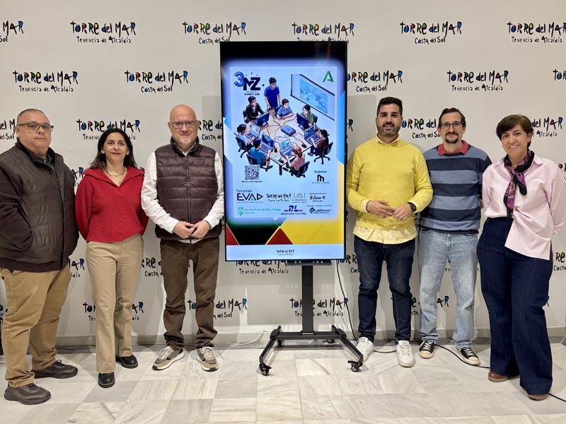 El primer teniente de alcalde de Vélez-Málaga y teniente de alcalde de Torre del Mar, Jesús Pérez Atencia; el profesor del IES María Zambrano de Torre del Mar, Pablo Solano; y el concejal de Nuevas Tecnologías del Ayuntamiento de Vélez-Málaga, David Segura, han presentado una nueva edición del proyecto educativo de creación de videojuegos que volverá a reunir a alumnado de distintos centros públicos de la comarca en una intensa jornada dedicada a la programación, la creatividad y el trabajo en equipo.