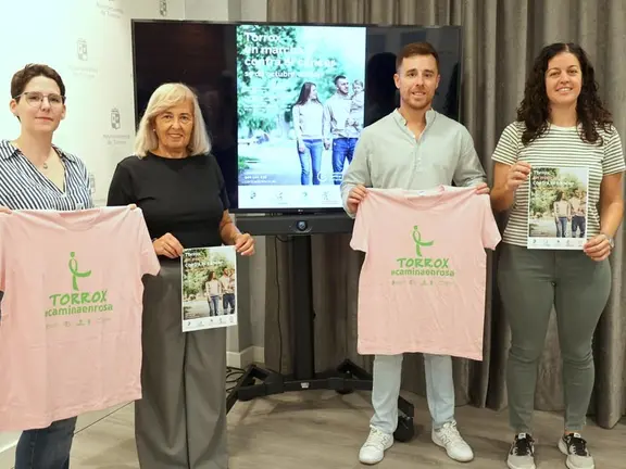 Por cuarto año consecutivo, Torrox volverá a marchar contra el cáncer el próximo 19 de octubre a partir de las 12:00 horas desde la Plaza Almedina. El cartel anunciador ha sido presentado en el salón de plenos del Ayuntamiento por el edil de Deportes, José Manuel Fernández; la concejala de Bienestar Social y Salud, Ana Pérez; y la presidenta y la trabajadora social de la Asociación Española de Lucha Contra el Cáncer (AECC) de Torrox, Mirian Ruiz y Helena Núñez, respectivamente. A un precio solidario de ocho euros, esta marcha no competitiva y apta para todos los públicos, incluirá para los participantes camiseta, agua, fruta y almuerzo. Fernández ha manifestado que el “objetivo es seguir concienciando en la lucha contra el cáncer y contribuir con la colaboración del Ayuntamiento a la recaudación de fondos para la AECC en Torrox, cuyos miembros merecen todo nuestro aplauso, respeto y reconocimiento por la encomiable labor que realizan”.
