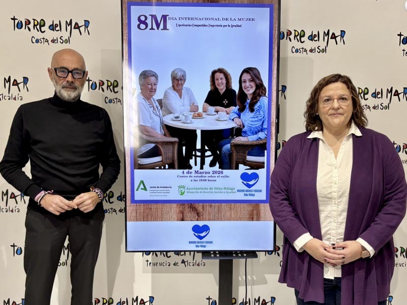 El concejal de Asuntos Sociales del Ayuntamiento de Vélez-Málaga, Juan García, junto a Victoria Pita, técnica del Centro Municipal de Información a la Mujer (CMIM), ha presentado la tercera edición del proyecto “Experiencias Compartidas, Trayectorias por la Igualdad”, una iniciativa que reconoce la labor y el compromiso de mujeres del municipio que han destacado en distintos ámbitos profesionales y sociales.