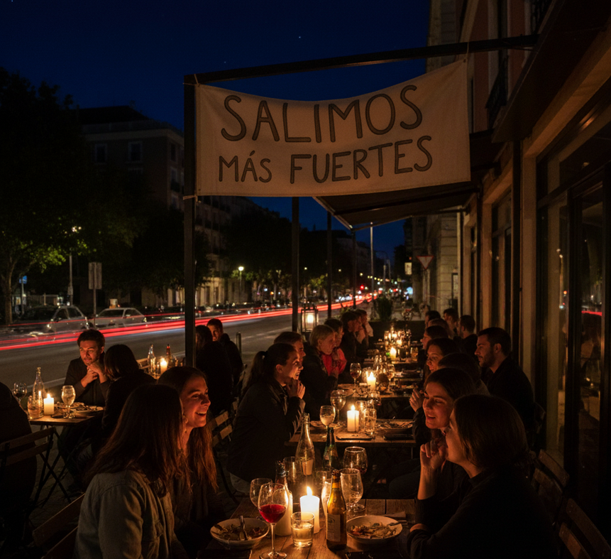 Y ese guía tendrá razón, porque, años más tarde, cuando España se apagó, los mismos que durante el confinamiento aplaudían en los balcones, prefirieron llenar las terrazas de los bares, se reunieron con los vecinos que no veían desde hace tiempo y dieron las gracias por poder estar unas horas sin móviles ni pantallas. Ojalá, más momentos así, desearon.