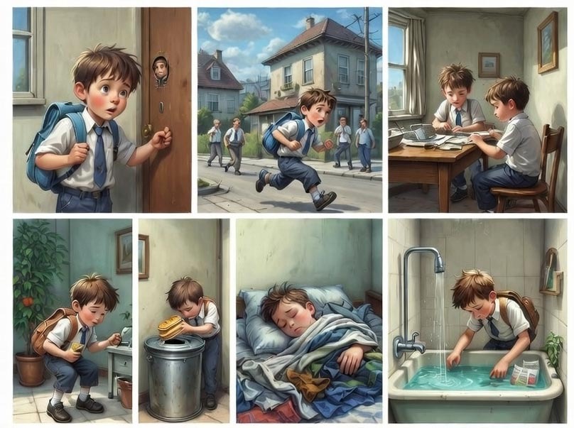 Desde entonces, cuando salía hacia el colegio, se aseguraba que todo estuviera en orden: tareas hechas, luces apagadas, ventanas cerradas, todo recogido. Bien, todo iría bien.