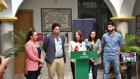 La delegada del Gobierno andaluz, Patricia Navarro, visita el Ayuntamiento de Benamocarra, uno de los municipios que se ha beneficiado de los planes de empleo para poder contratar a desempleados