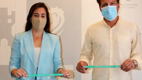El Ayuntamiento de Torrox, la Tenencia de Alcaldia de El Morche, Policía Local y Protección Civil reciben un Belén con el Niño Jesús representado con mascarilla, imagen unitaria de esta iniciativa