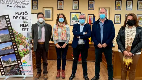 El presidente de la Mancomunidad de Municipios de la Axarquía Costa del Sol, José Juan Jiménez, y el vocal de Turismo de la entidad, Juan Peñas, hacen balance de la gestión de la oficina comarcal de rodajes destacando que más de una quincena de productoras nacionales e internacionales han desarrollado sus trabajos en una amplia mayoría de municipios de la comarca.
